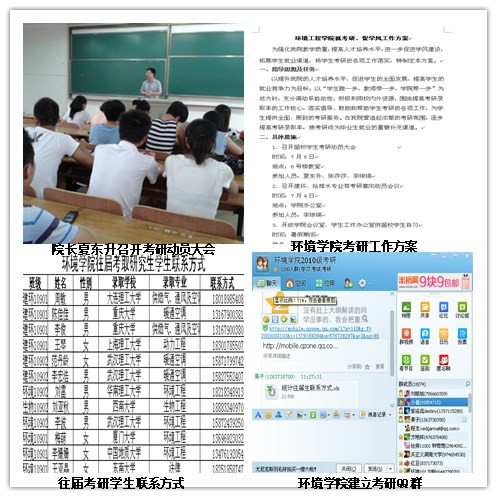 经过动员,环境学院报名研究生学生比例达到43%。学院还将设立考研专项奖金,通过对考研达线的同学,向其所在街道或村委会、原高中邮寄喜报,并在学院网站、海报栏等设立光荣榜等措施鼓励同学考研。