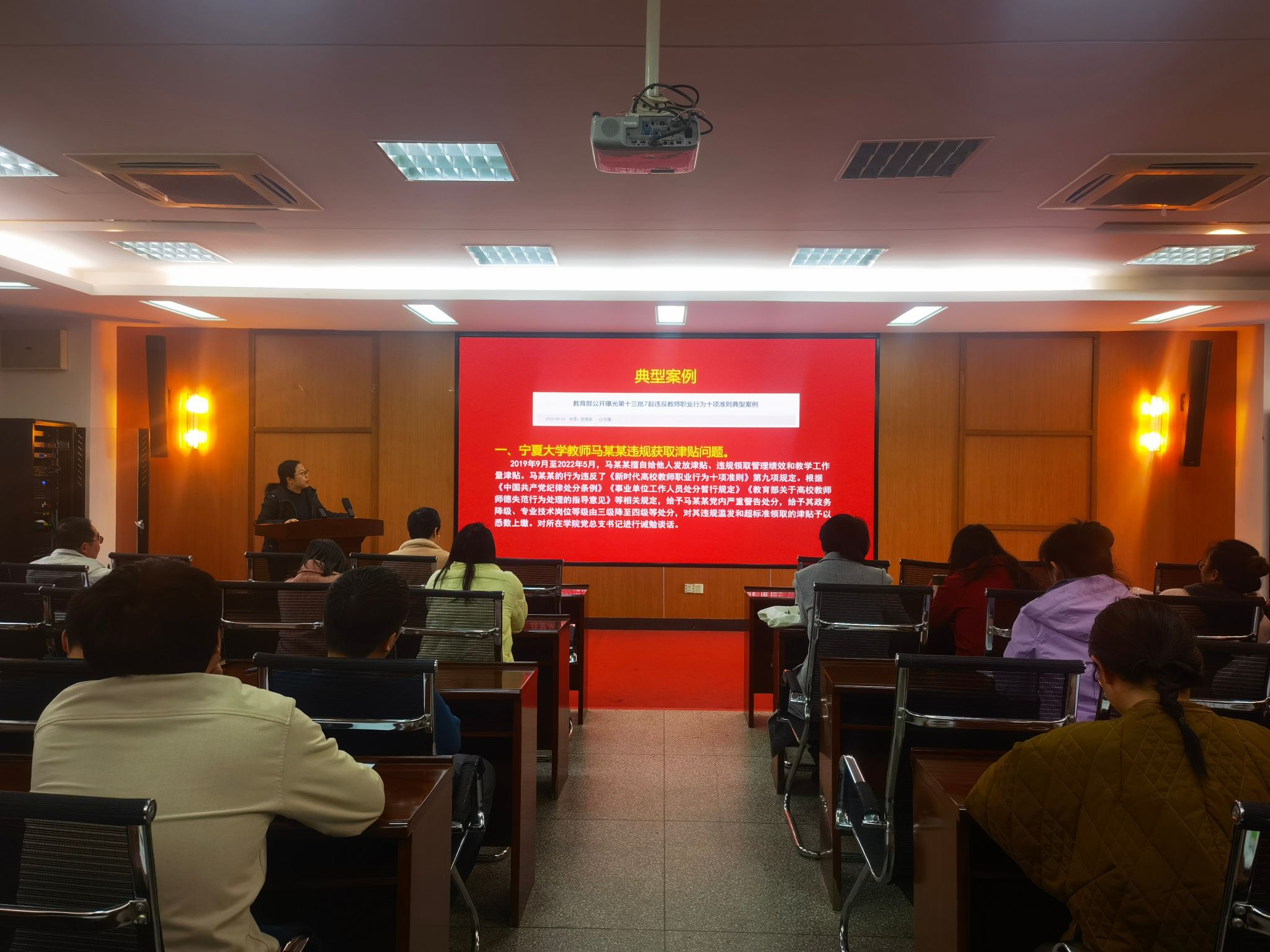 会上,蔡亚君副院长结合教育部 "红七条" 禁令,剖析了近期高校典型案例:某学校某学院教师与学生关系失格,在网上形成极为负面影响,等等案例。这些案例就发生在我们身边,暴露出部分教师对师德师风的漠视会引发大的问题。