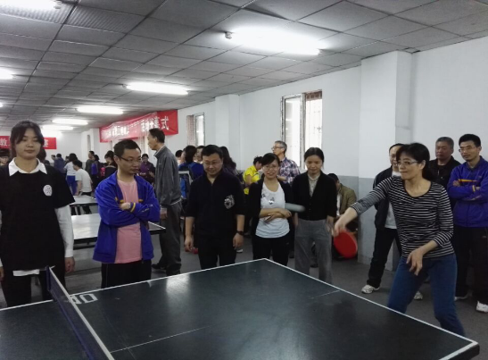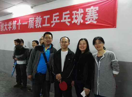 4月23日,在南湖校区乒乓球场,环境学院分工会组织教工代表队参加了学校乒乓球比赛。