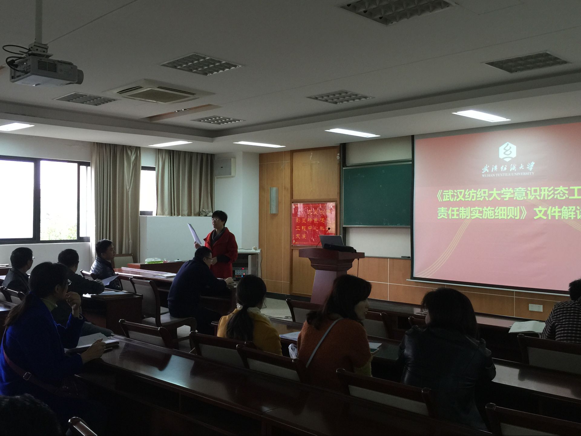 在党委中心组会议上,学院党委书记谢晓萍同志首先传达了学校近期党建工作安排,并着重指出了在老师和学生中落实意识形态责任制工作的重要性和紧迫性。接着,谢晓萍书记以《学习党的十八届六中全会精神》为题做了专题辅导报告,学院党委中心组成员一起进行了深入的学习。