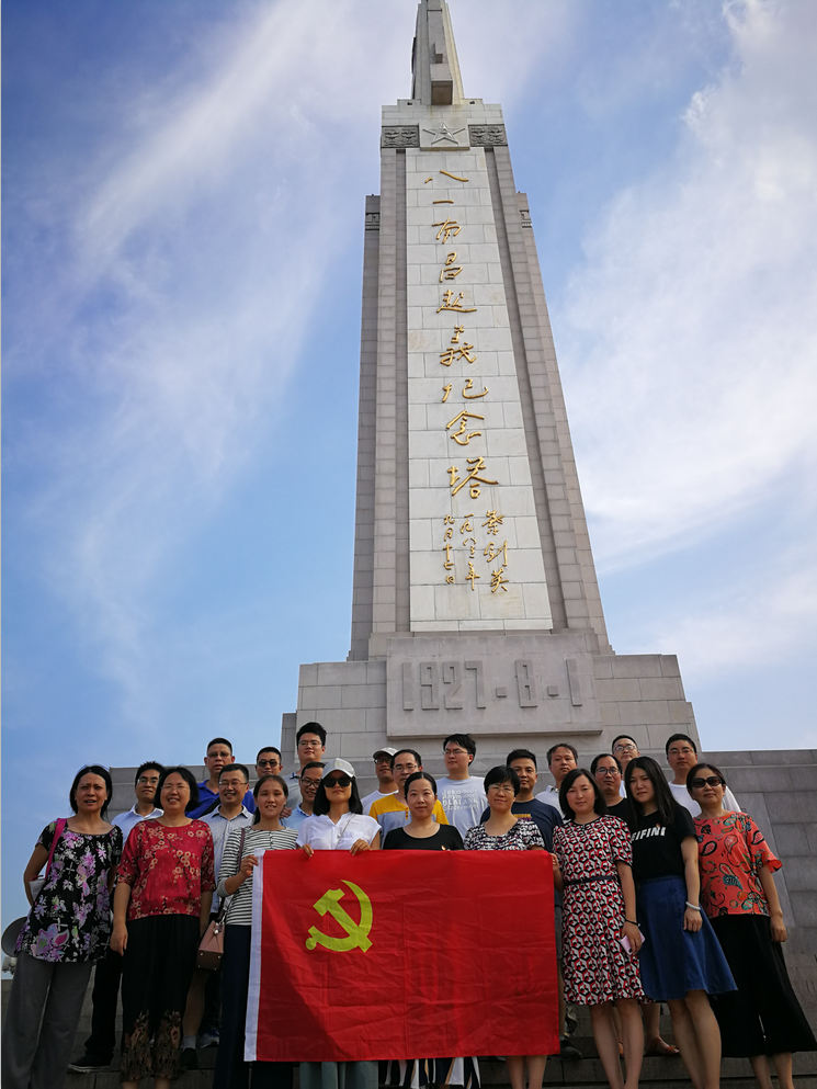7月17日下午,全体党员来到南昌八一广场,瞻仰了八一起义纪念碑。在纪念碑前,大家怀着崇敬的心情,缅怀革命先烈,追溯八一南昌起义那永恒的历史。面对党旗,全体党员庄严地举起右手,在谢晓萍书记的带领下,重温了入党誓词:“我志愿加入中国共产党……随时准备为党和人民牺牲一切,永不叛党”。