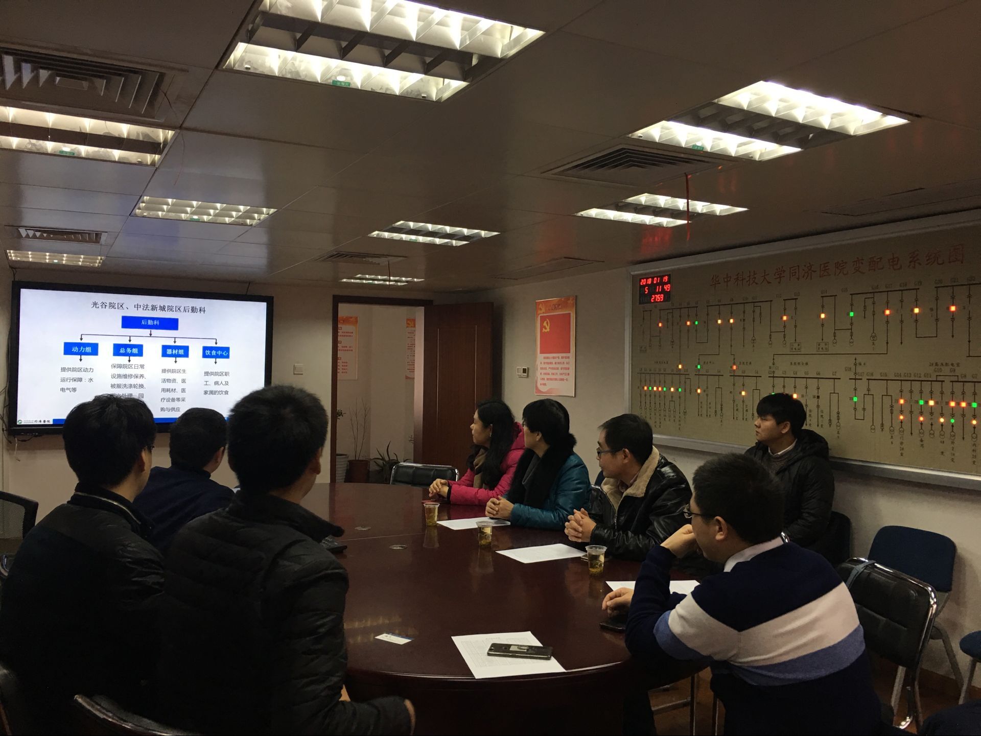 在同济医院主院区动力科会议室,动力科冉科长、后勤二支部王书记对学院的到访表示热烈欢迎,介绍了同济医院的人才培养模式和晋升体系、我院16名毕业生在医院的工作表现。谢书记介绍了学院在环境研究领域取得的成果及运用,并表达了对校企合作的期望,潘飞院长就科研课题合作申报和毕业生带着课题进行培养进行了沟通交流,双方还就建设实习基地、学生见习、专业能力提升等方面达成了初步意见。