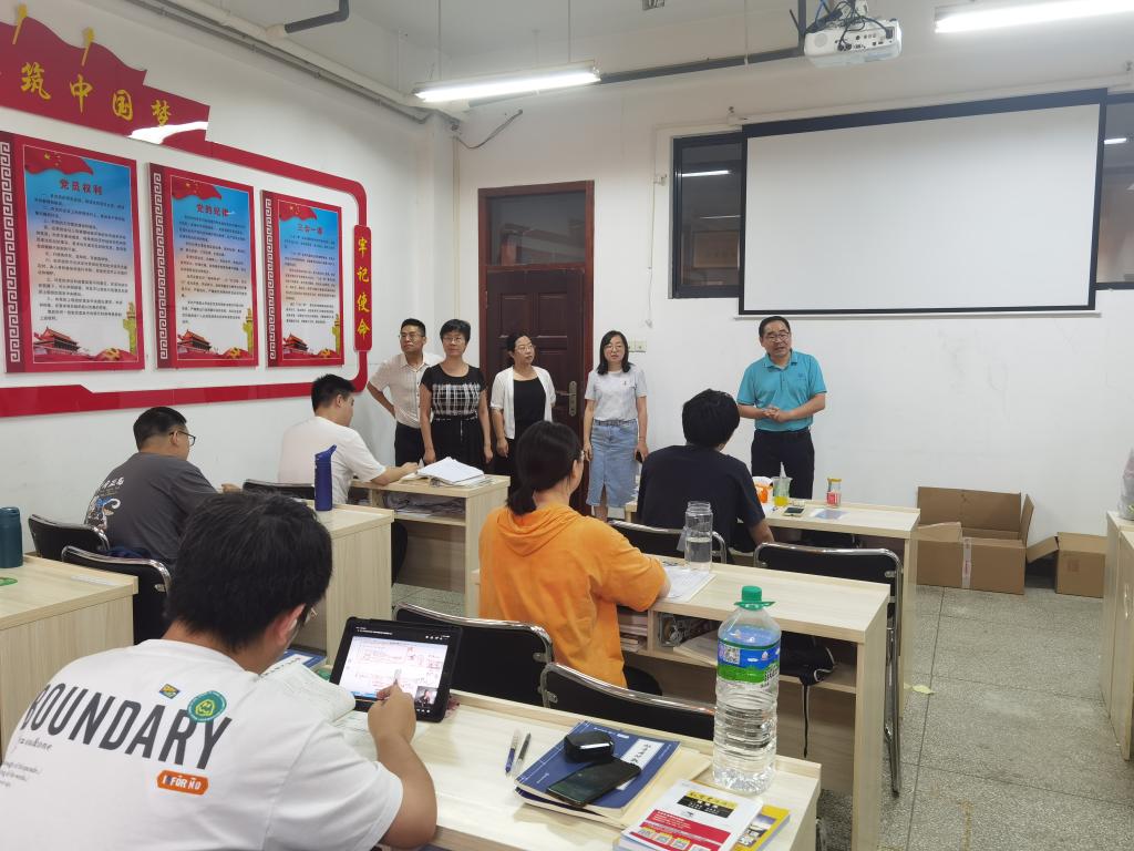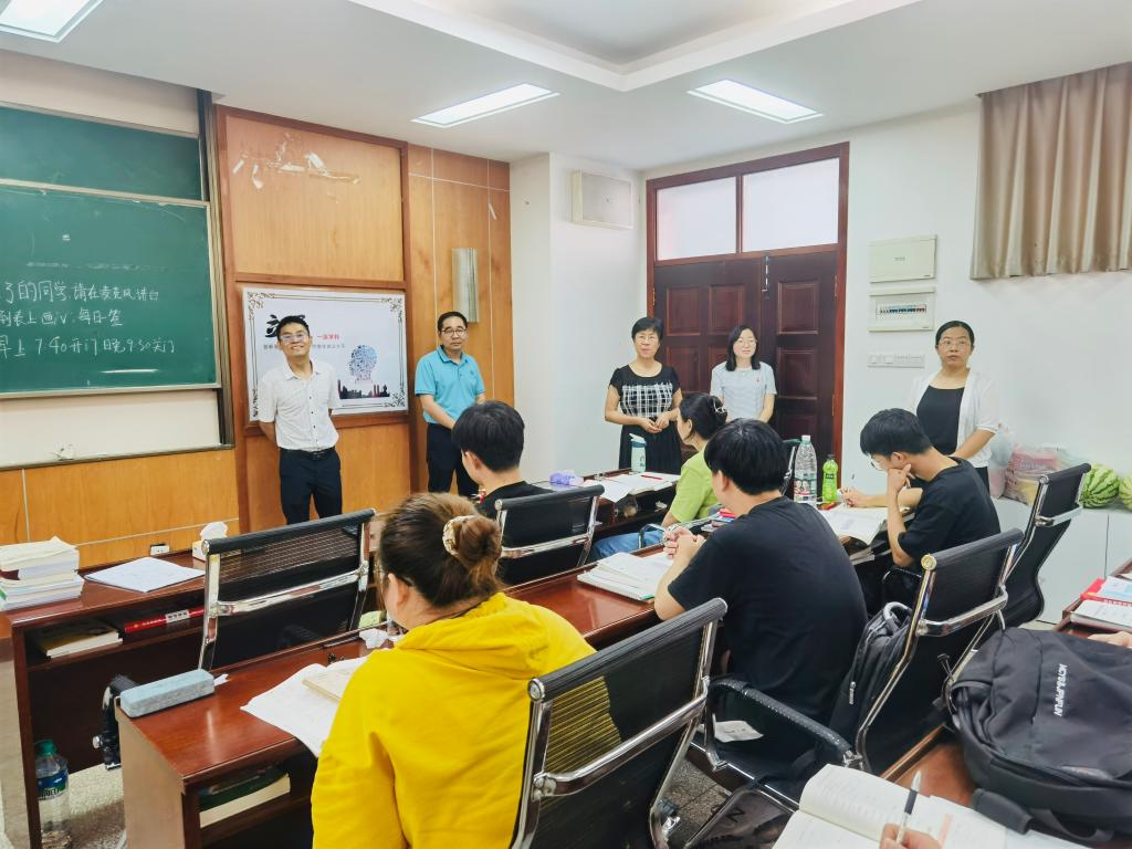 潘飞院长对同学们在酷暑天气下坚持学习、认真科研表示了肯定,他结合自身学习经历给同学们提出了几点建议:第一,戒骄戒躁。考研是一场时间跨度长、内容跨度广的攻坚战,要保持良好的心态,稳抓稳打,循序渐进;第二,做好规划。严格按照进程进行备考,提高备考效率;第三,加强锻炼。身体是革命的本钱,也是考研的基础。同学们要适当的进行体育锻炼,提高身体免疫力,用良好的体魄去迎接持久备战。