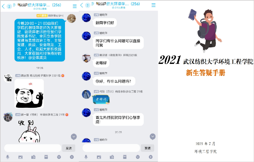 8月6日起,为期20天的线上答疑陆续展开,“老师,给排水科学与工程专业考研的话可以考哪个方向?”“老师,想入党需要具备什么条件?”“学长,学校宿舍是什么样子的呀?”……新生们在群里积极提问,得到了答疑老师和学长的积极回应,就新生关心的报到流程、专业知识、大学生涯规划等答疑解惑。