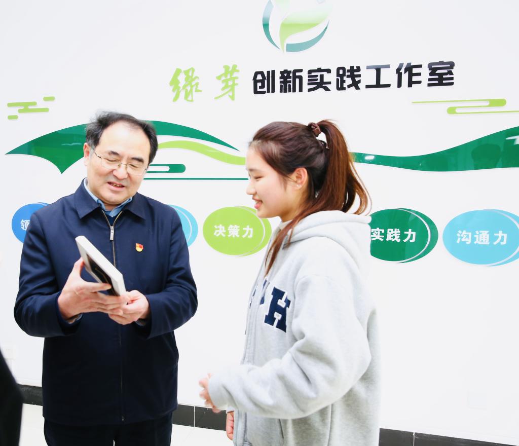 田辉玉和罗锦银共同为“绿芽创新实践”学生服务驿站揭牌,校领导一行参观走访了“一站式”学生服务驿站党建服务区、创新实践基地阳光学习走廊、社团文化营地等功能区域,并对正在进行挑战杯备战的李东亚师生团队的科创活动进行了指导。