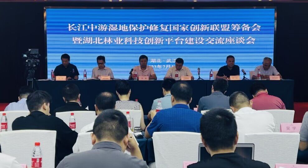 7月14日,长江中游湿地保护修复国家创新联盟首次筹备会及全省林业科技创新平台建设交流座谈会在武汉举行。湖北省林业科学研究院、中国科学院水生生物研究所、华中农业大学、武汉纺织大学等16家单位成为首批联盟成员。我校环境工程学院院长潘飞教授受邀出席会议,并作为首批理事会成员参与相关活动。