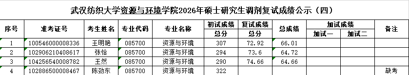 根据《武汉纺织大学2026年招收攻读硕士学位研究生复试录取方案》等文件精神,现将开云kaiyun官方网站2026年硕士研究生第四轮调剂复试成绩公示。公示时间:2026415-17