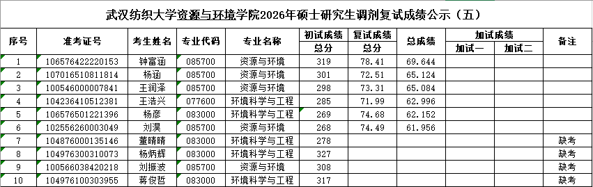 根据《武汉纺织大学2026年招收攻读硕士学位研究生复试录取方案》等文件精神,现将开云kaiyun官方网站2026年硕士研究生第五轮调剂复试成绩公示。公示时间:2026年4月17日-19日