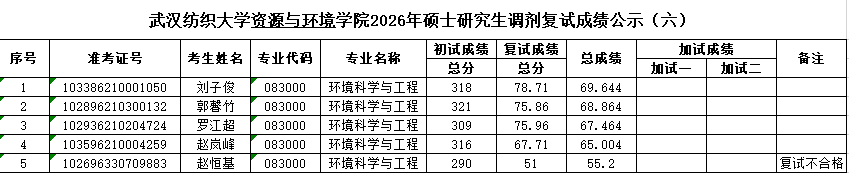 根据《武汉纺织大学2026年招收攻读硕士学位研究生复试录取方案》等文件精神,现将开云kaiyun官方网站2026年硕士研究生第五轮调剂复试成绩公示。公示时间:2026年4月17日-19日