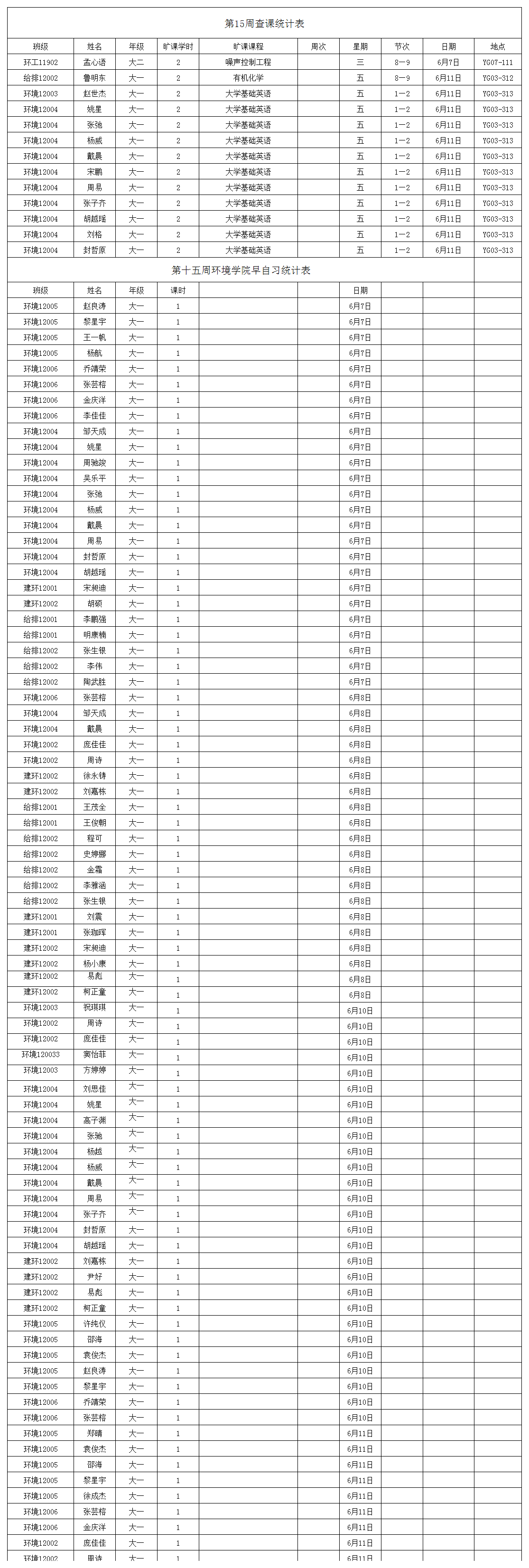 【学风建设】第十五周查课通报