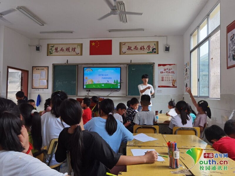 中国青年网恩施8月8日电(通讯员 刘一帆 陈纯红)为丰富乡村留守儿童的假期,在孩子们心中埋下梦想的种子,7月10日,武汉纺织大学环境工程学院“种夏梦”支教实践团来到湖北省恩施市来凤县绿水中心小学开展暑期绿色夏令营支教活动。孩子们在志愿者带领下学习知识,玩游戏,做手工,一起度过愉快暑假。