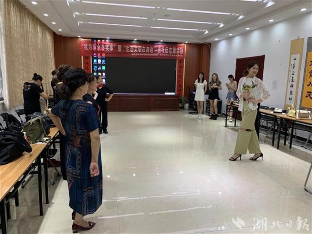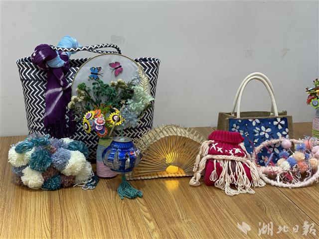 此次参与服务的文艺轻骑服务队队员来自武汉纺织大学服装表演和艺术设计专业,队员们分为两组,一组为阿姨们开展形体、台步、音乐组合训练及服饰搭配等教学;另一组则指导阿姨将家中废弃的干花、布料、衣扣、玻璃瓶、塑料瓶盖等制作成手绘古风扇、手提包、花瓶、灯笼等环保时尚单品。