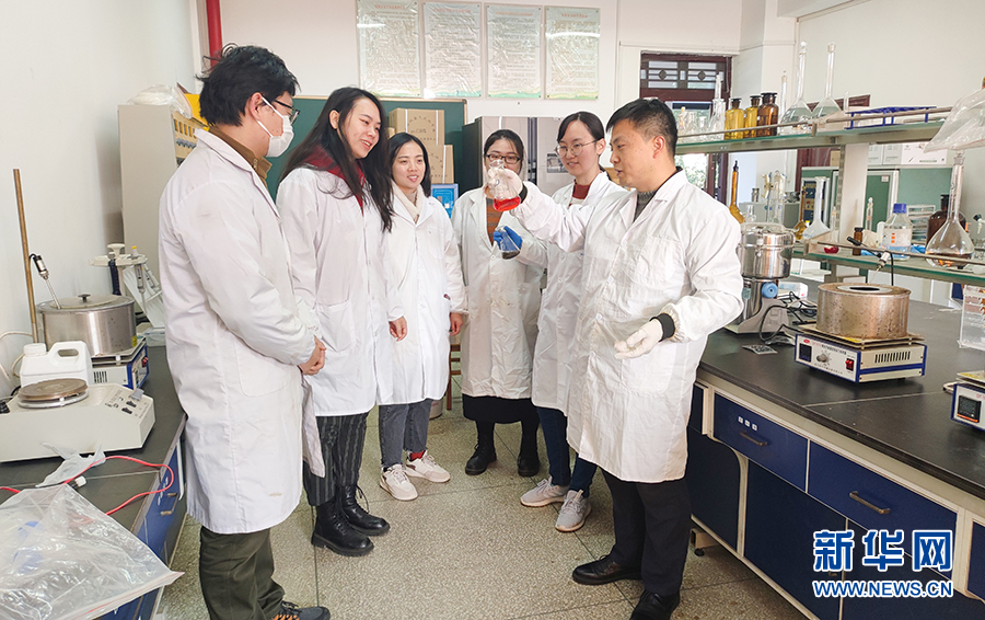 图为武汉纺织大学“固废综合处置与协同利用技术研究”创新团队开展相关实验。新华网发