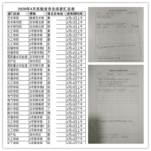因疫情突发且持续时间较长,在寒假放假前部分实验室未做好长期关闭的准备工作,为落实校内实验室安全,消除安全隐患,资产处、技术研究院、化工学院、纺织学院、环境学院、电气学院、数计学院、艺术学院等11个单位进行了安全隐患现场巡查,巡查人员在做好自身防护、不聚集的情况下,深入安全重点防范部位和实验室认真检查了室内外水、电、气、仪器状态、危险化学品存放等情况,对部分精密仪器设备进行了维护和检测,对安全隐患进行了及时处理,并做了详细记录,防止发生因疫情期间无人值守造成的实验室安全事故,也确保各类仪器设备在正式复学后能正常运行。