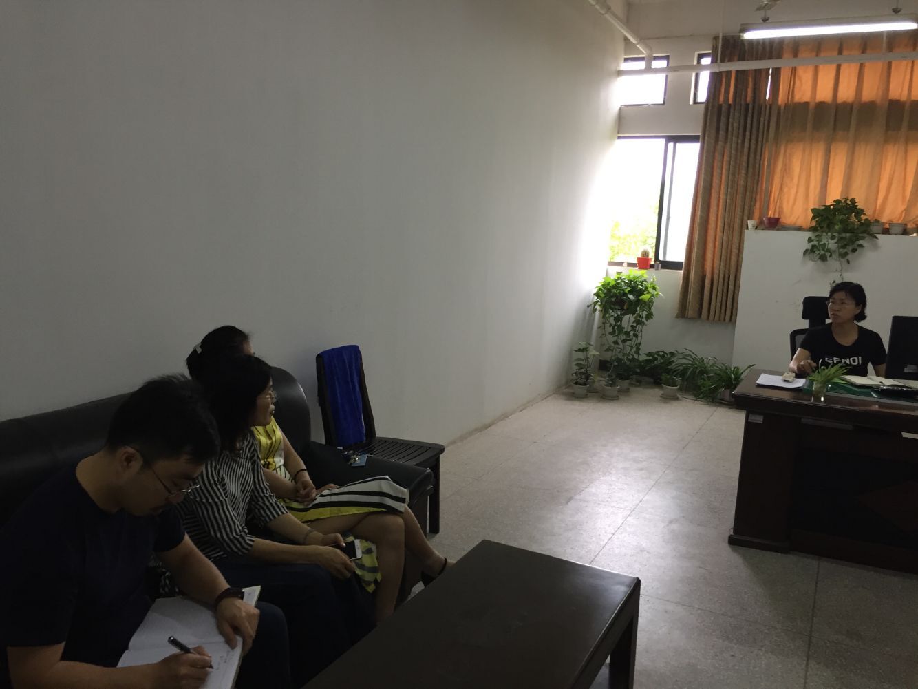 实验室主任彭其安老师与实验人员就具体管理工作进行讨论。现场解决环境监测实验室耐腐蚀药品箱不足的问题,与资产处沟通并安排专人对接关于购置安全气瓶固定装置,与相关老师沟通移走公共实验室的个人设备等事情。