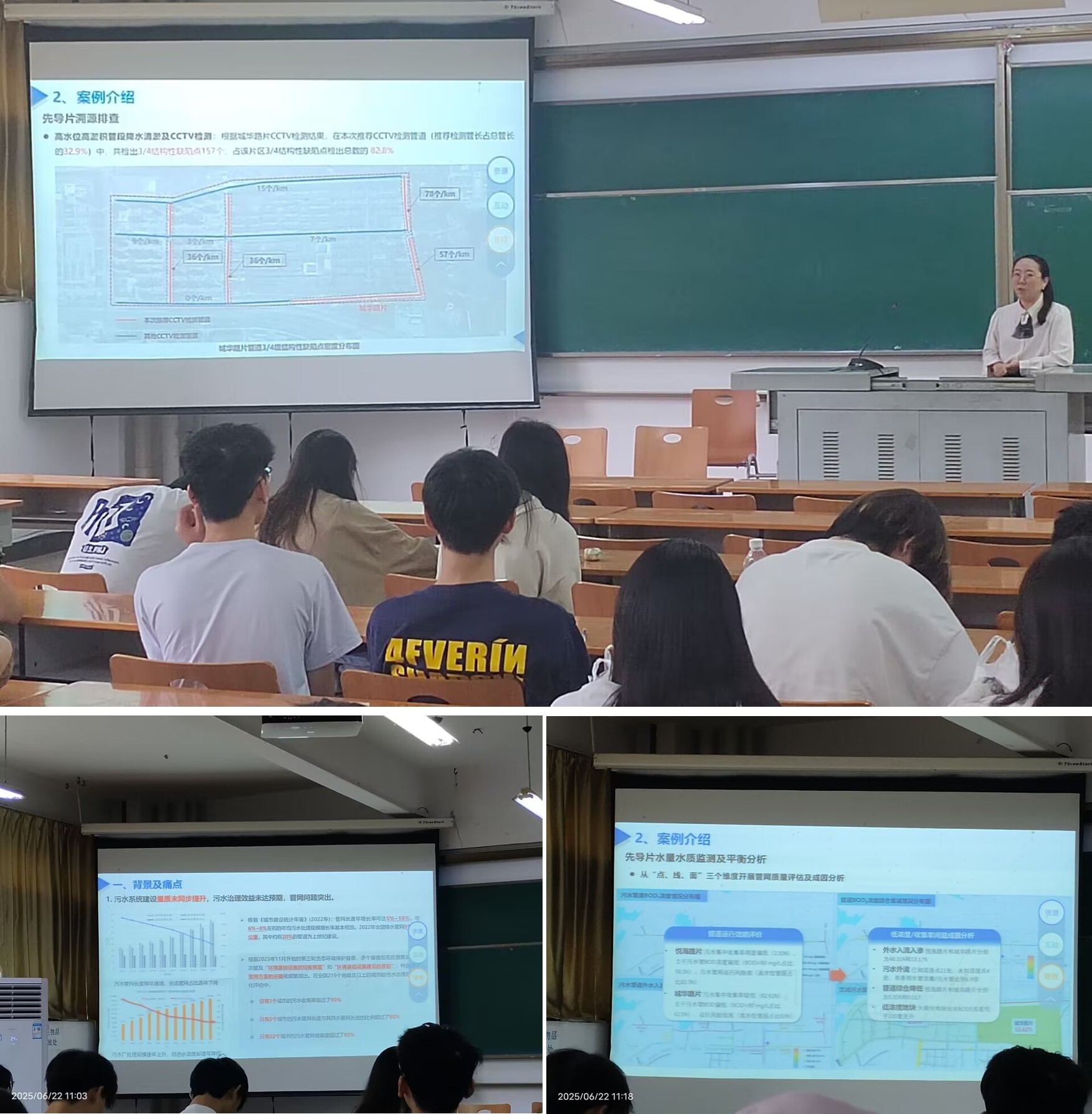 6月22日上午,开云kaiyun官方网站给排水科学与工程专业邀请两位企业导师来校交流。作为资源环境学院暑期实习实践活动的一部分,来自中国市政工程中南设计研究总院有限公司的高兰博士为给排水专业的学生做了《数字化创新与智慧水务应用实践》的讲座,来自武汉市政设计院有限公司的熊雪君博士做了《南方滨水平原城市污水管网系统诊断案例及思考》的讲座。
