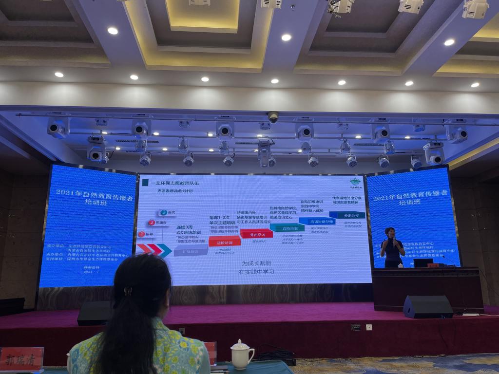 7月14日-15日,由生态环境部宣传教育中心、内蒙古自治区生态环境厅联合主办,内蒙古自治区生态环境宣传教育中心承办的“2021年自然教育传播者培训班”在呼和浩特举行。内蒙古自治区生态环境厅副厅长张慧宇参加开班仪式并作讲话,生态环境部宣传教育中心教育室主任祝真旭到会并致辞。来自全国各省、市生态环境系统、教育系统、环保社会组织、有关行业企业代表110余人参加了培训。学院副院长潘飞、姚瑶老师参加了本次培训。