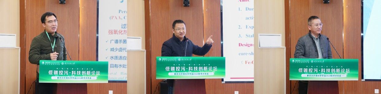 在大会邀请报告环节,华中科技大学谢鹏超教授作了以“基于过氧乙酸活化的水处理氧化体系”为主题的报告,系统的展示了过氧乙酸高级氧化技术在水处理中的应用过程,中南民族大学孙杰教授做了“以电芬顿水处理的强化策略”为主题的报告,介绍了通过电芬顿方法强化水质净化过程的作用机制,武汉智汇元环保科技有限公司的高级工程师黄颖作了“推动以“环保管家”为主题的环境综合服务”为主题的报告,讲解了公司在环境综合服务方面的相关方式。现场学术氛围浓厚,讨论交流互动热烈。