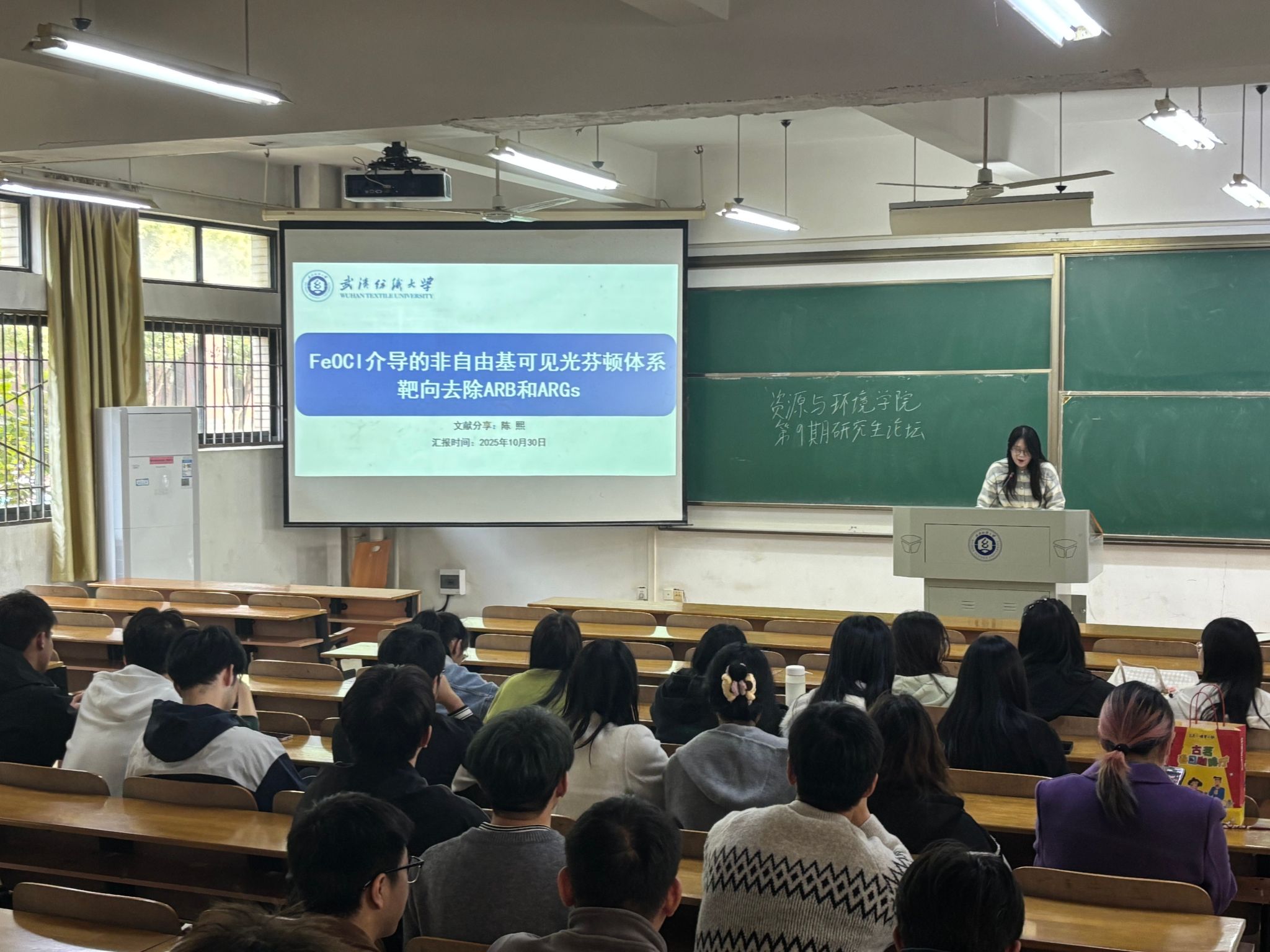陈熙同学分享了FeOCl介导的非自由基可见光芬顿体系靶向去除ARBARGs,该研究构建了FeOCl介导的非自由基可见光芬顿体系,利用¹O2h+协同高效去除抗生素耐药菌(ARB)与耐药基因(ARGs)。体系克服了传统自由基路径的局限,阐明了微生物不可逆损伤及基因传播阻断机制,为水体耐药性污染提供了新策略。