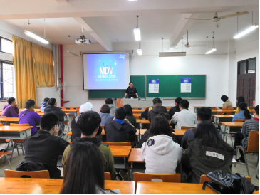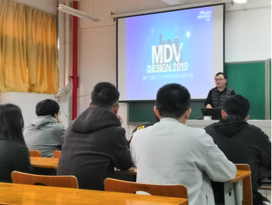 3月28日下午两点,第十七届MDV中央空调设计应用大赛宣讲会在崇礼楼108教室举行,武汉美的暖通设备销售有限公司胡志涛经理到场讲解。