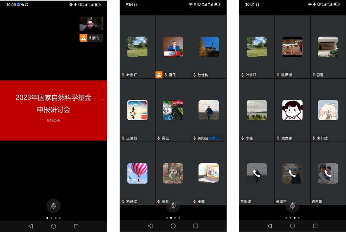 2023年2月1日上午10点,我院在线上召开2023年国家自然科学基金第四轮研讨会,拟申报基金的老师参加了会议,研讨会由院长潘飞教授主持。