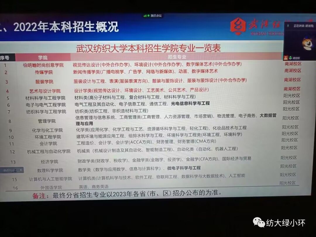 胡龙翔向商水一中的同学们介绍了武汉纺织大学招生基本情况,招生政策及报考指南,鼓励学弟学妹们报考纺大!