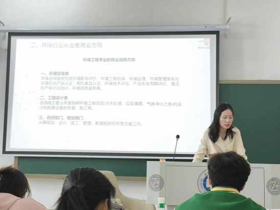 陈经理从环保行业从业者的状况概览、就业分布、薪酬水平以及环保行业未来就业发展趋势等几个方面为学生做了分享,用真实的案例和十多年人力资源工作经历为同学们分析了环保行业职业发展前景,让同学们对环保行业未来的就业方向有了更全面的认识。