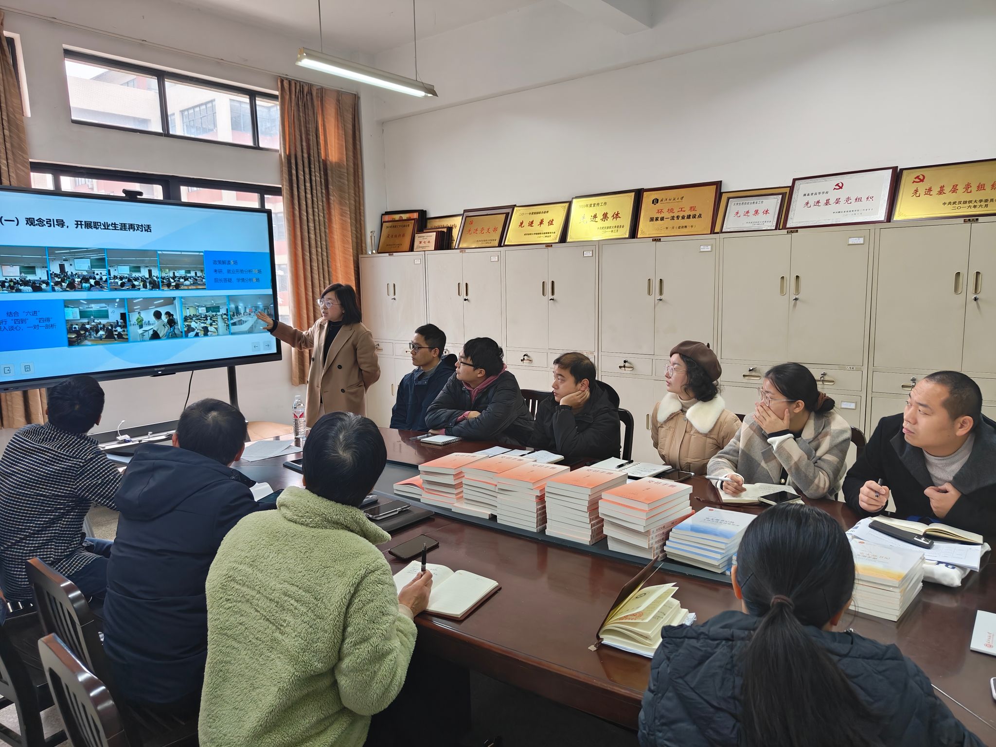姚瑶同志首先领学习近平总书记发表的关于就业工作的重要讲话和文件精神,她说根据中央的精神,目前的就业形势特别是高校大学生的就业情况发展的很快,我们今年的就业任务很重,需要我们主动出击、积极作为和有更好的举措来提升我们就业工作的质量,困难是有的,但是只要我们直面,大家团结起来可以把这个工作向前推进。她说,考研、考博和考公等各方面的工作也是有进一步提升的空间,学院要“六个一”结对为抓手,访企拓岗、面向一线 ,精准帮扶做好就业工作,同时也要从实习实践等方面提升毕业生就业技能,全面推荐高质量的就业工作。