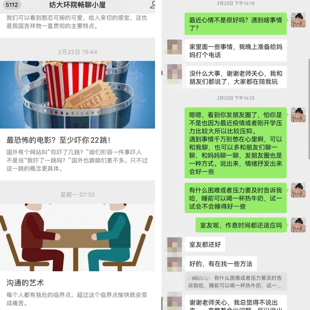 学院辅导员、班主任通过班会、电话、QQ等多渠道多形式,对校外未返校学生、集中隔离学生、重点关注学生等特殊群体提供心理帮扶,了解学生动态,及时进行心理疏导。引导同学们合理进行规划、稳定情绪,认真完成网上学习。