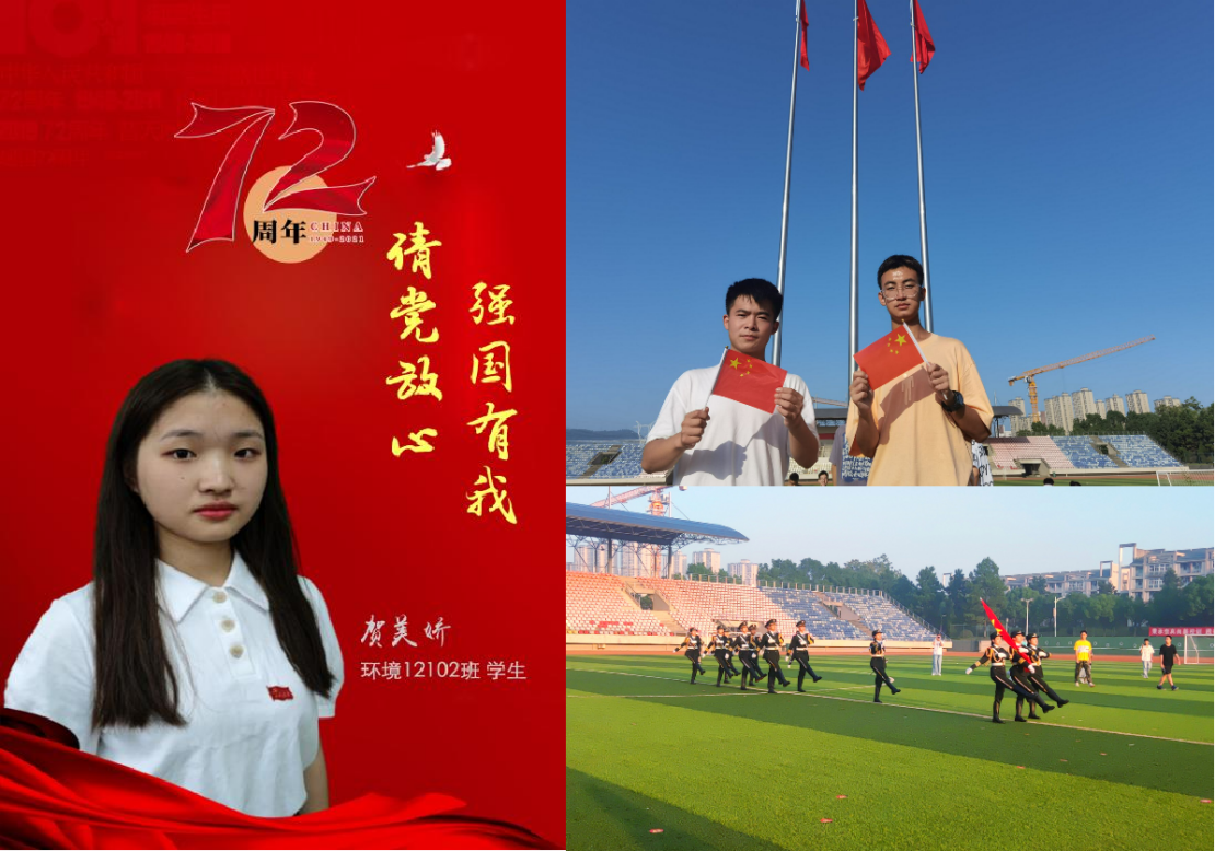 在中华人民共和国72周年华诞之际,环境学子因爱集结,以自己的方式向祖国母亲告白。10月1日清晨,给排12101班班长杨润杰组织全班同学到阳光操场观看国庆升旗仪式,他动情的说,“如果信仰有颜色,那一定是中国红,祖国母亲生日快乐!”环境12102班贺美娇在国旗下庄严承诺,“请党放心,强国有我!”