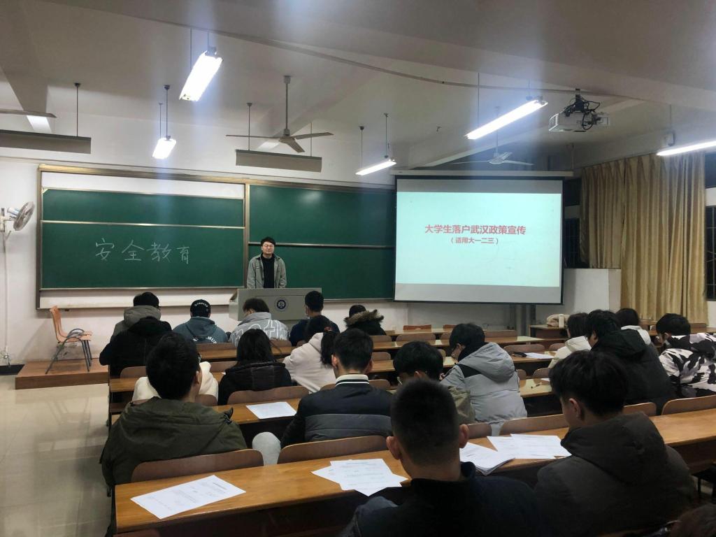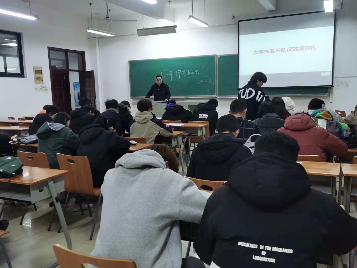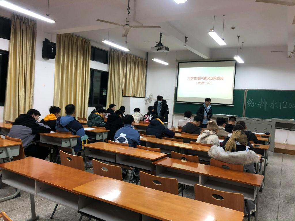 为大力推广宣传武汉市大学生落户新政,帮助同学们了解掌握户口办理流程,12月13日,环境学院各年级于崇礼楼开展了“大学生落户武汉政策宣传”主题班会,副书记刘园美、各级辅导员、班主任及全体学生参加。