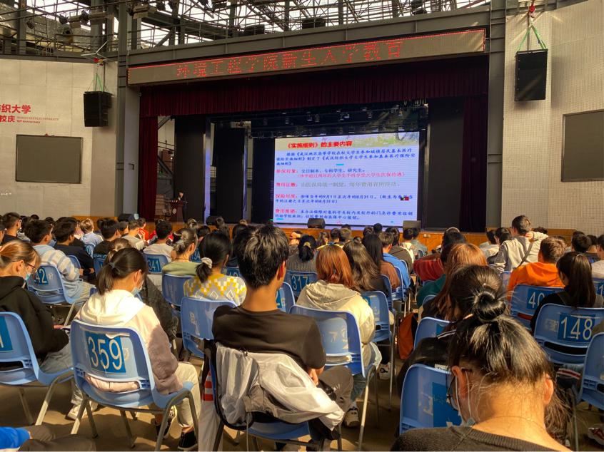 为有效落实疫情防控\增强学生传染病防控意识,10月22日下午,学院在大学生活动中心演播厅开展新生疾病预防教育,讲座由校医务室段海瑛医生主讲,学院全体2020级新生到场聆听。