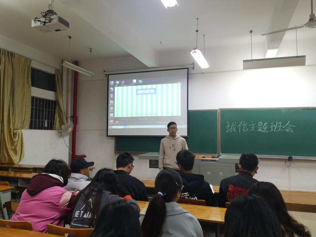 为了进一步提高当代大学生的诚信力度,培养当代大学生的诚信精神。武汉纺织大学环境工程学院近日举办了“以诚立身,以信服人”为主题的诚信教育主题班会。