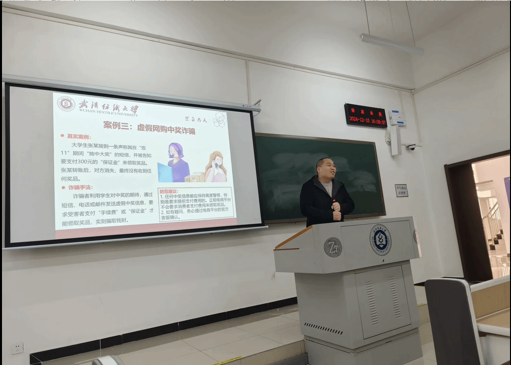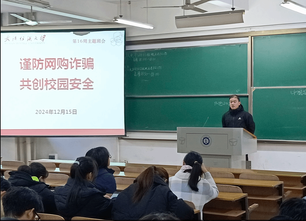 为加强同学们防范网络购物诈骗的意识1215日,学院各年级及研究生分别在崇礼楼开展了谨防网购诈骗,共创校园安全”主题教育班会活动,帮助同学们深刻认识网购诈骗的危害,并告诫同学们要谨防网购诈骗,提高自我防范意识,守好自己的钱包。