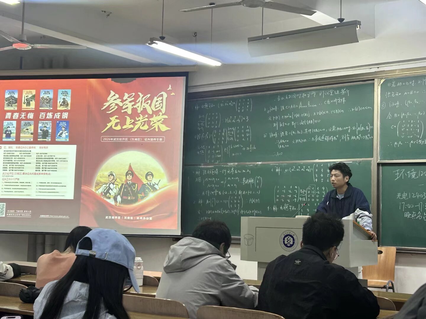 11月23日,副书记、各年级辅导员、班主任、退役士兵代表分年级、班级开展了“携笔从戎砺青春 热血报国正当时”主题班会暨征兵政策宣讲会。班会上,同学们集体观看了2026年征兵宣传片,老师们详细解读了入伍待遇、入伍条件、入伍流程环节,普及入伍常识,让同学们有了更为全面和深入的了解。