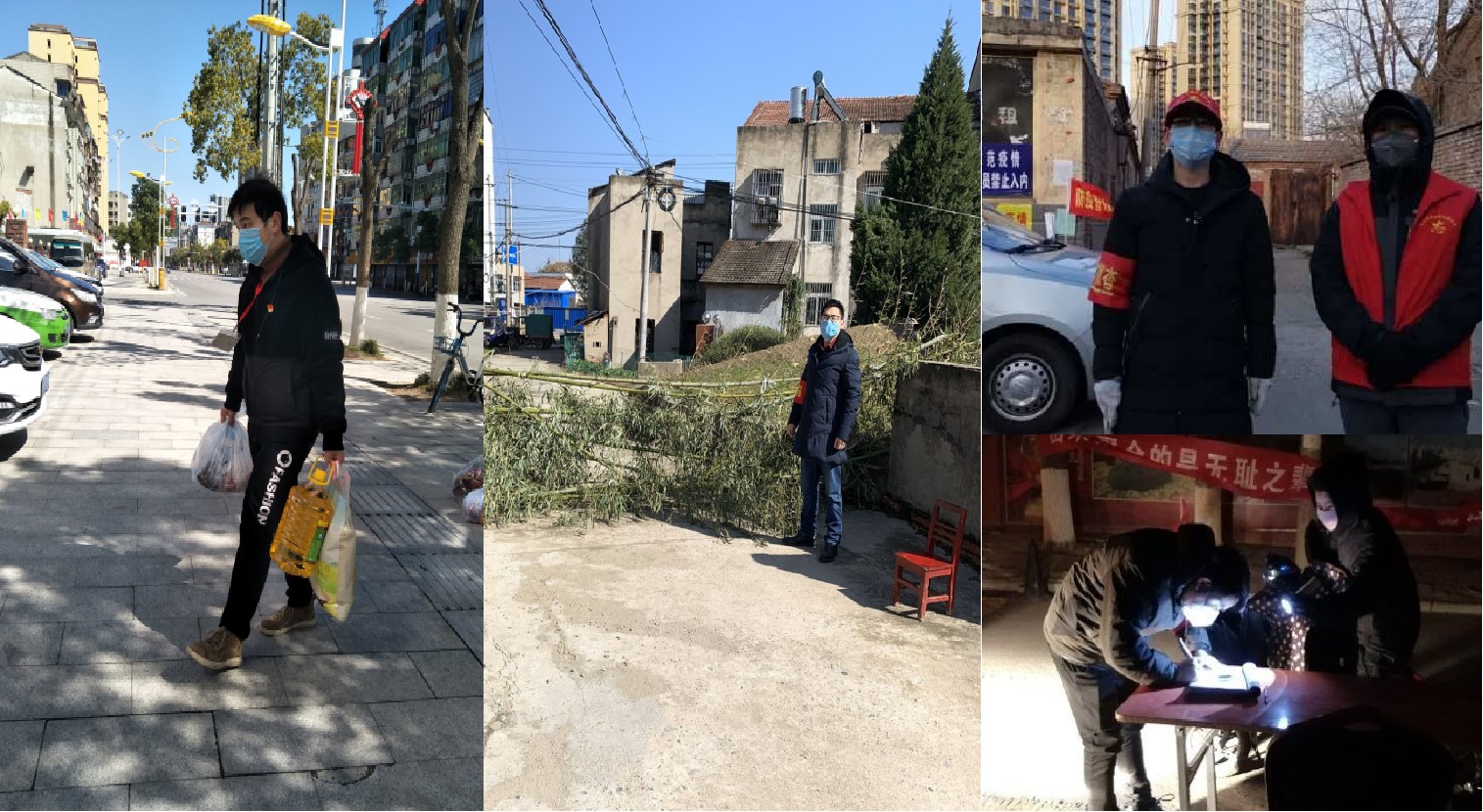 洪湖市是荆州下属县市,也是距离武汉较近的地区,疫情严重,全城实施战时封闭管理。共产党员、学院青年博士叶宇轩响应号召,报名参加洪湖市新堤办事处的疫情防控工作,守好封堵卡点,对小区人员的进出严格登记,对病人、疑似病人、密切接触者等及时报告处置,做好体温监测和出入登记,为居民提供物质保障服务,赢得了百姓的点赞。