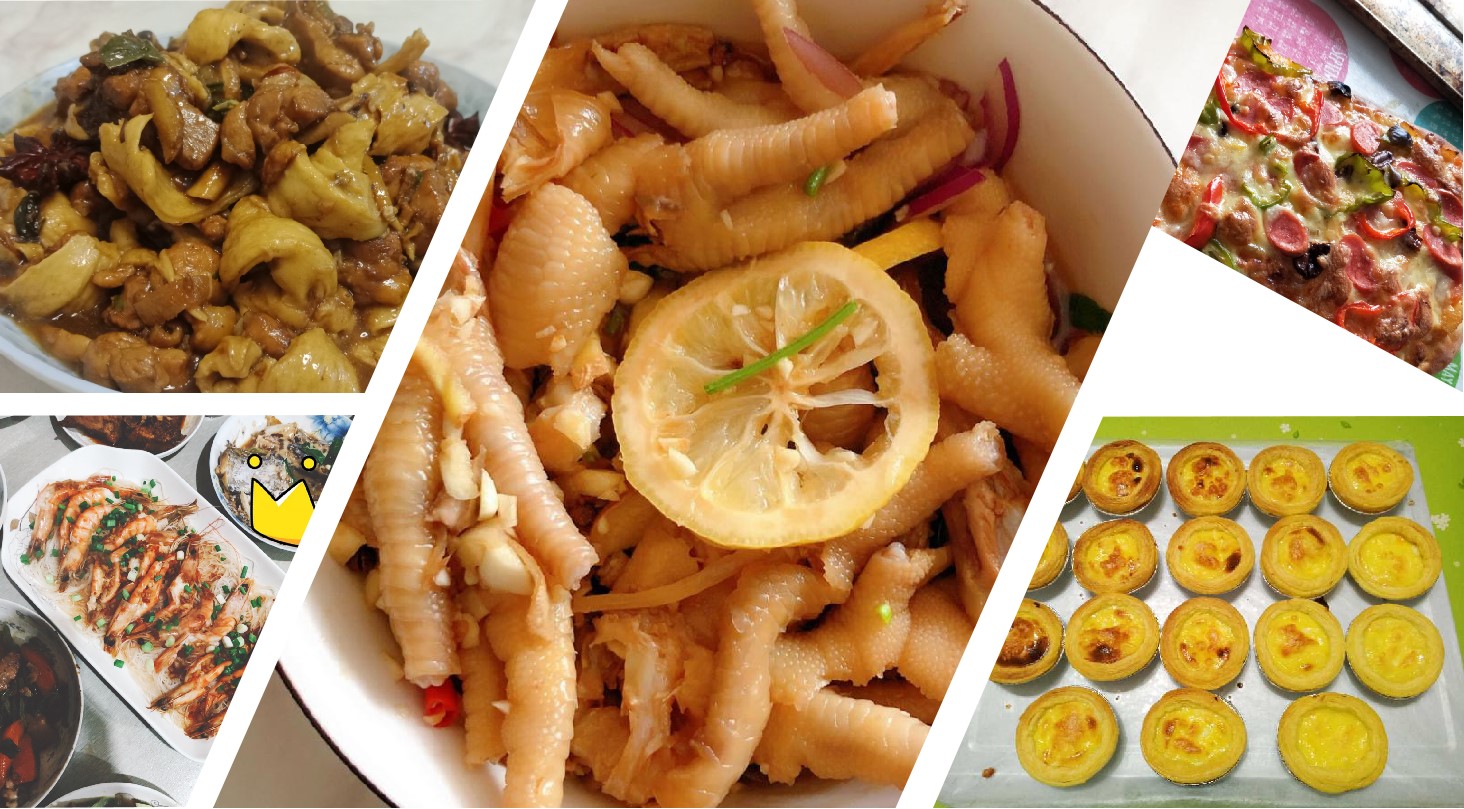 来自环境工程专业大二学生蔡承建,看到复工后爸妈十分操劳,决定利用网络资源学着做饭,好让爸妈有更多的时间休息,第一次做面筋鸡就得到了家人的交口称赞,心里美美哒;有同样想法的给排水专业大三学生李传航,为让父母下班就能吃上热乎的饭菜,做出了明虾“大餐”;而环境工程专业大三学生余越化身美食博主,用简单工具做的披萨、蛋挞一样十分诱人。