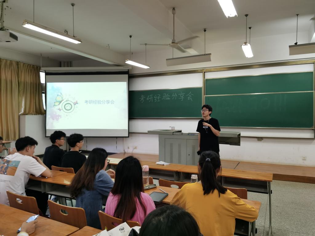 为充分发挥好朋辈领航作用,达到资助育人成效,环境学院一直以来注重学生励志典型的挖掘和培育。同时,为了进一步提高我院学生的考研热情,明确考研目标,掌握相关考研技巧。学院于5月9日下午五点在崇礼楼212教室开展考研经验分享会,邀请四位不同专业、考研优异且曾获得奖学金的学生武志鹏(环境专业)、刘浏(生物专业)、曹曦(建环专业)、张紫姮(给排水专业)交流并分享他们的考研经历与经验。