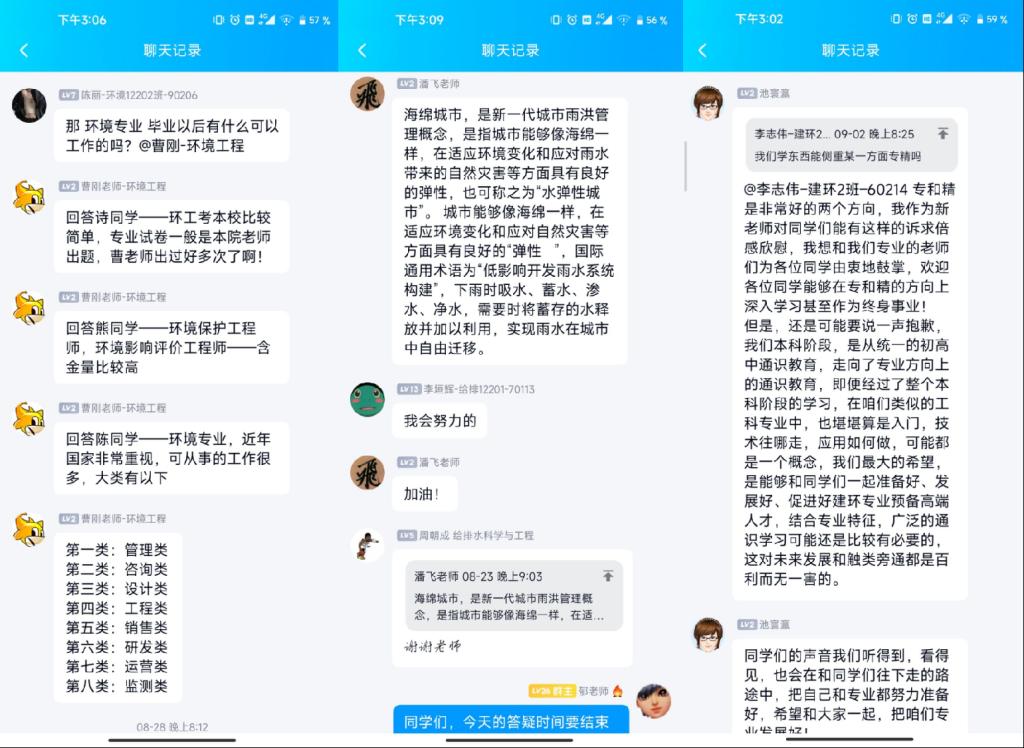 为让迎新工作更热情、温暖、快捷,学院早在8月初,就组织专业课教师、班主任、青年博士开展新生群线上答疑,专业介绍前置,专家见面前移,让新生了解学校、学院更早一点。“潘老师,可以给我们讲讲什么是海绵城市吗?”“老师,请问学习流体力学和热湿交换理论会涉及到很多实验吗?”新生们在群里积极提问,得到了学院专业老师、班主任的积极回应,就新生关心的报到流程、专业知识学习、大学生涯规划等答疑解惑。