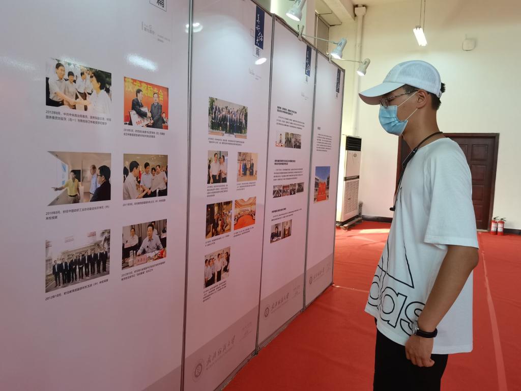 下午2点半,新生以班级为单位走进大学生活动中心参观“永远跟党走”图片展,同学们或驻足认真观看,或小声交流讨论。环境12101班联络人顾城珲表示,“图片展给我们上了一堂生动的党课,我们不仅是历史的见证者,更是参与者。”
