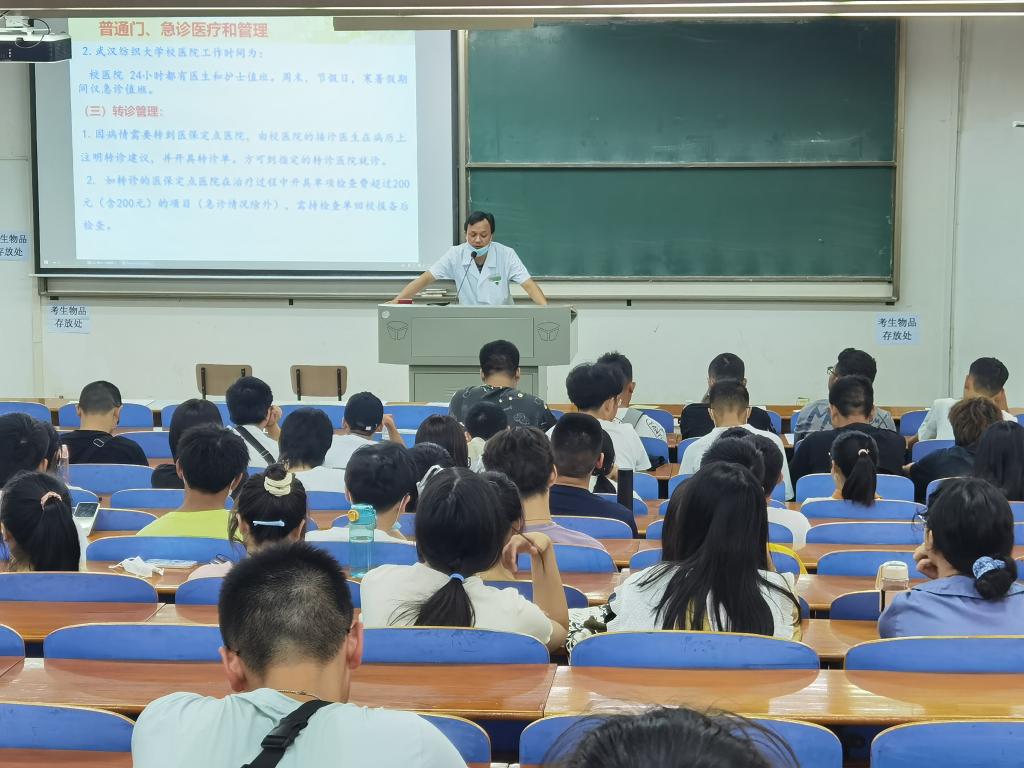 为增强新生对医疗健康的重视,提高同学们对各类传染病的防范意识,特别是疫情期间自我防护能力,范医生走进03-T202教室为同学们开展医疗健康讲座,他结合从医经验和学生需求,从大学生医保使用方法、急救知识、“防艾、防新冠、防肺结核”传染病知识等方面为同学们作了介绍,告诫大家在新的学习生活中,要加强体育锻炼、规律饮食,增强自身免疫力。