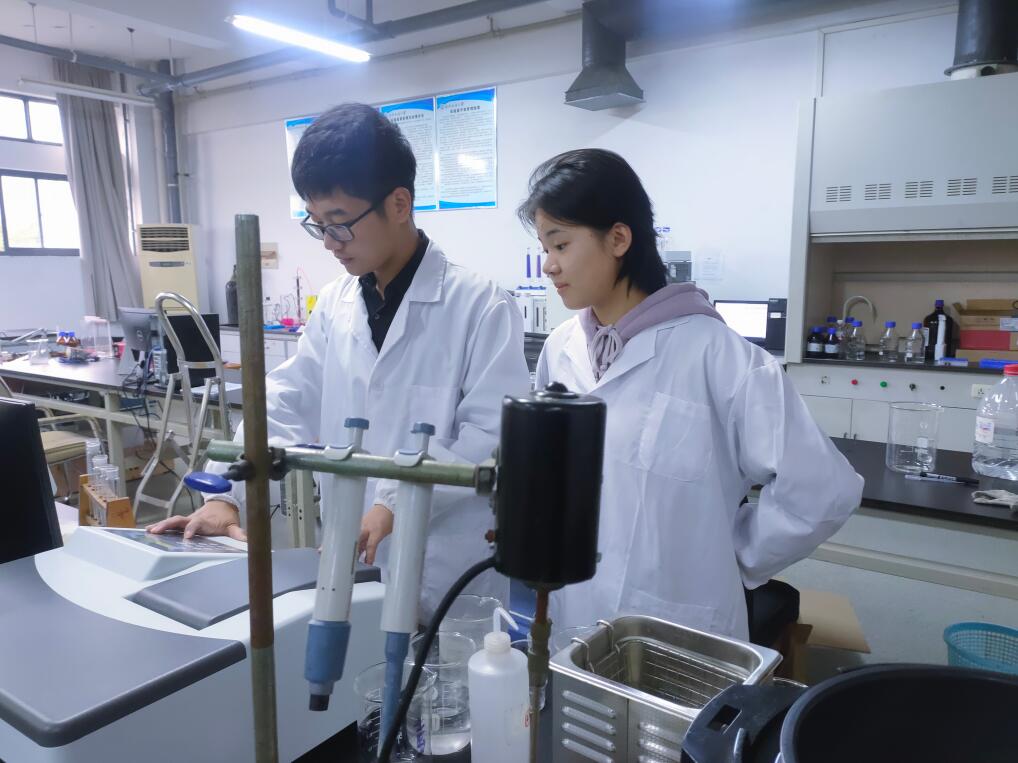 走进纺织印染清洁生产教育部工程研究中心实验室,左诗语正在带刚刚通过本科生导师制加入团队的大一新生王紫怡一起做实验。提及左诗语,王紫怡告诉我们“左师兄从来没有跟我炫耀过发表多少论文、得到过什么奖励,每天来的最早、走的最晚,而且不会放过任何一个周末。在实验进度遇到挫折时,我们会相互打气鼓励,课题组既严肃又活泼”。