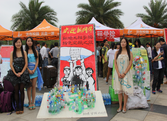 据悉,环境学院还将把此次迎新回收上来的瓶子拿去换各种美丽的盆栽,送给学弟学妹们当见面礼,让同学们知道资源回收利用的价值。