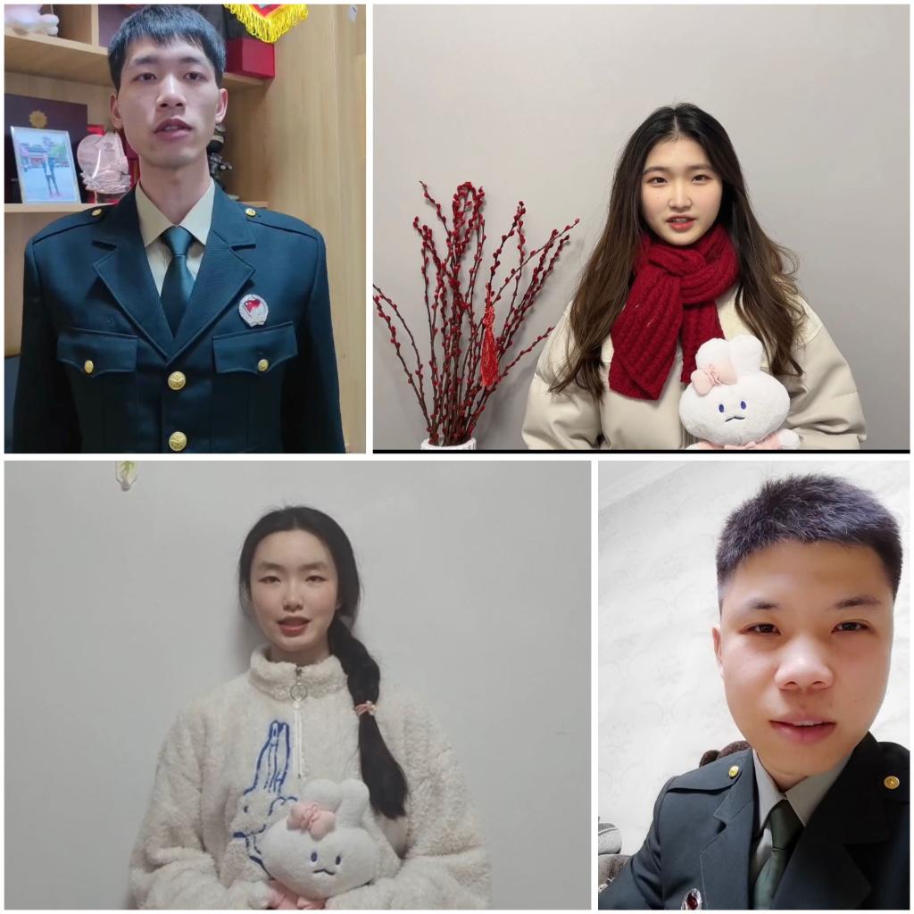“视频拜年”别出心裁温暖师生。学院组织同学们以视频“云拜年”方式向全校师生送上新年祝福。“新年新气象,祝福纺大全体师生2023年兔飞猛进,好事连连!”环科12101班何美娇同学拿着可爱的兔子公仔向大家拜年。建环11903班预备党员付篁声音洪亮,代表退役士兵给师生们送来新春祝福。“云拜年”,见屏如见面,阻断的是病毒的传播途径,却传递了最温馨的祝福和最温暖的笑容。