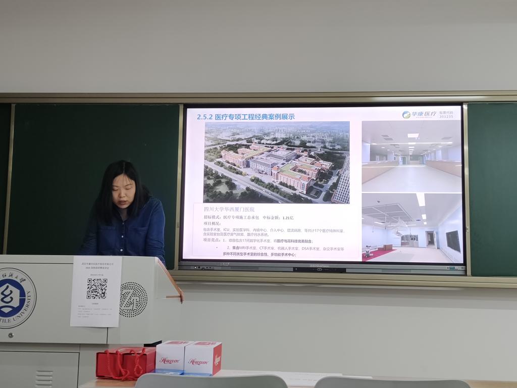 宣讲会现场,企业人事部经理余娜通过视频、PPT的方式对公司概况、岗位分工、入职流程、晋升渠道、员工福利等方面进行了详细介绍,武汉华康世纪医疗股份有限公司(公司简称:华康医疗),成立于2008年,是一家深交所创业板上市公司。公司以空气洁净技术为核心,为客户提供全过程专业技术服务,致力于成为医疗专项与实验室集成化整体解决方案服务商,是国内知名企业。