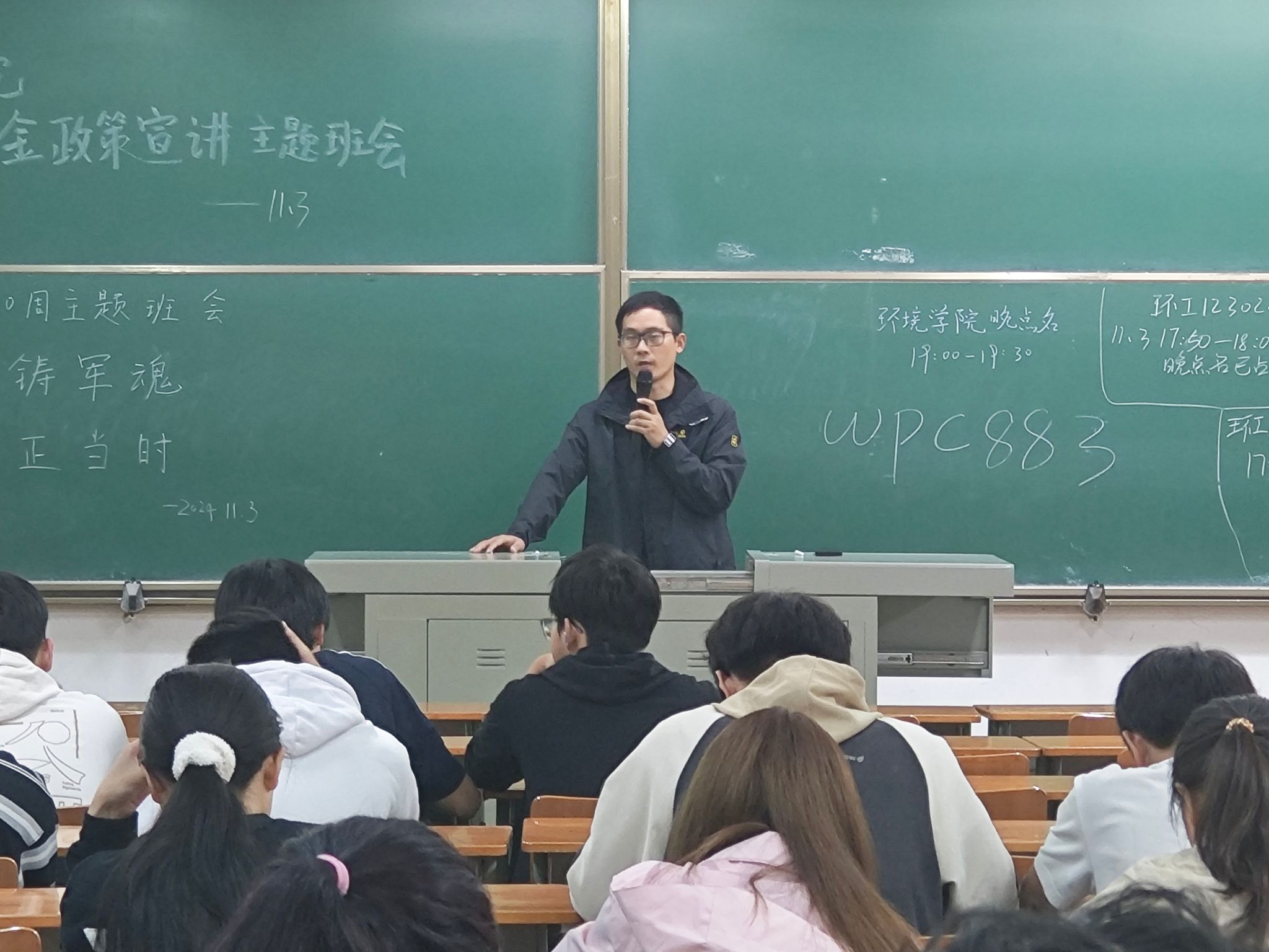 11月3日,为营造浓厚的参军入伍氛围,引导动员同学们积极投身军旅、建功立业,学院各年级及研究生分别在崇礼楼开展了“热血铸军魂,报国正当时”主题晚点名班会。