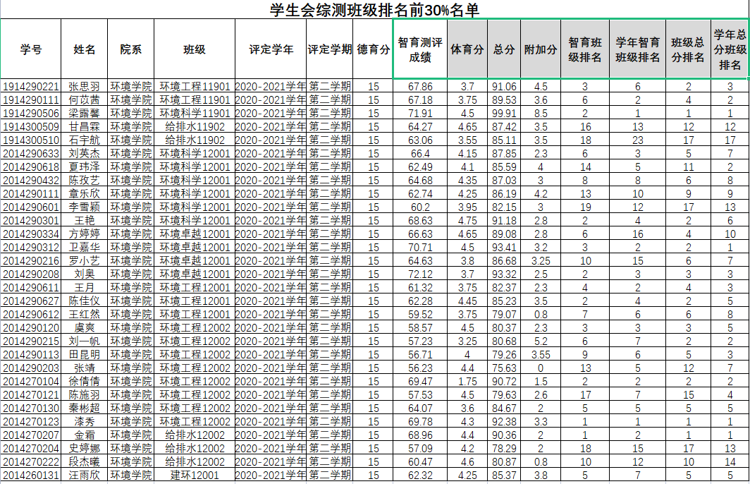 根据学校相关工作要求,院学生会换届后,成员综测成绩均在所在班级排名前30%,现对相关成员综测成绩情况公示如下: