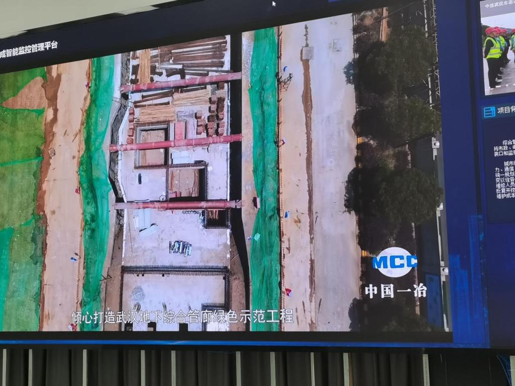 第三站,实践队参观了综合管廊监控中心。综合管廊监控利用最新的信息和显示技术为中法武汉生态城提供了基础设施保障,是中法武汉生态城赖以生存的“血管”。中国一冶集团胡一剑为实践队员们讲解了监控中心如何运用大屏幕显示系统,实现综合管廊监控和报警的数字化、图形化,安全管理的信息化和调度指挥的科学化。在他的带领下,实践队队员们深入到地下施工地点,实地观看了两横一纵的建设方式,了解了如何用更加低碳节能的方式给城市供热、供电,打造武汉地下综合绿色小镇。
