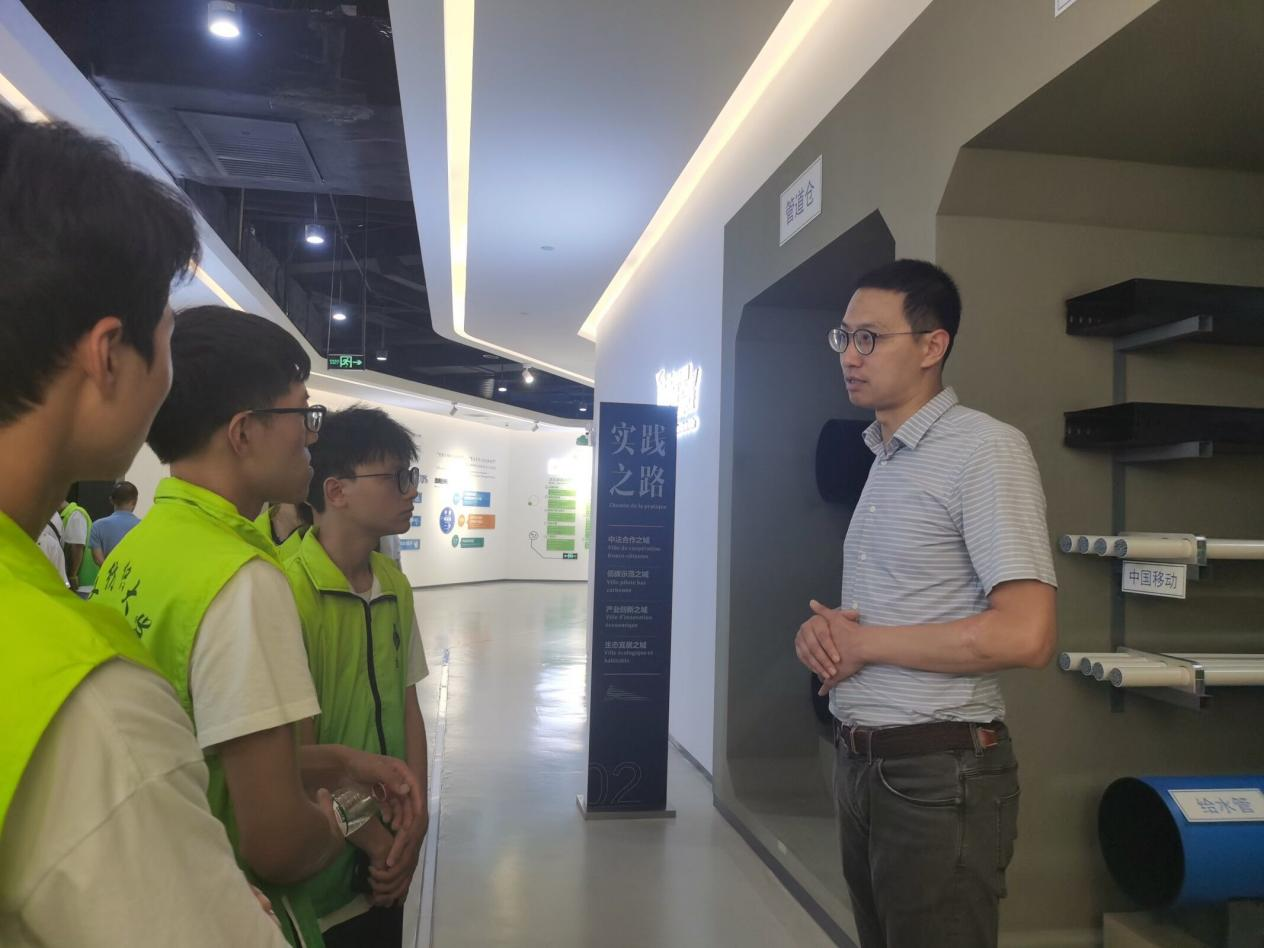 7月7日,武汉纺织大学 “环保交响队”社会实践团成员一行来到武汉市中法武汉生态示范城,实地走访中法半岛小镇滨湖生态涵养带、综合管廊监控中心、启动区能源站、中法友谊树、中法生态城规划展示馆,学习绿色低碳经验,宣传“双碳理念”,助推城市生态文明建设。