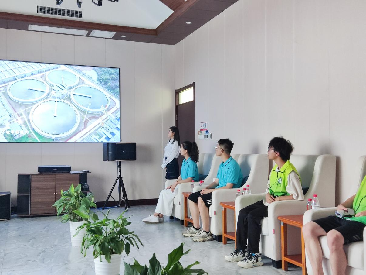 厂区分为管理区、污水处理区及污泥处理区三个区,在接待人员的带领下,团队走进厂区总控室、初沉池、生化池、二沉池等,学习污水处理的全过程。